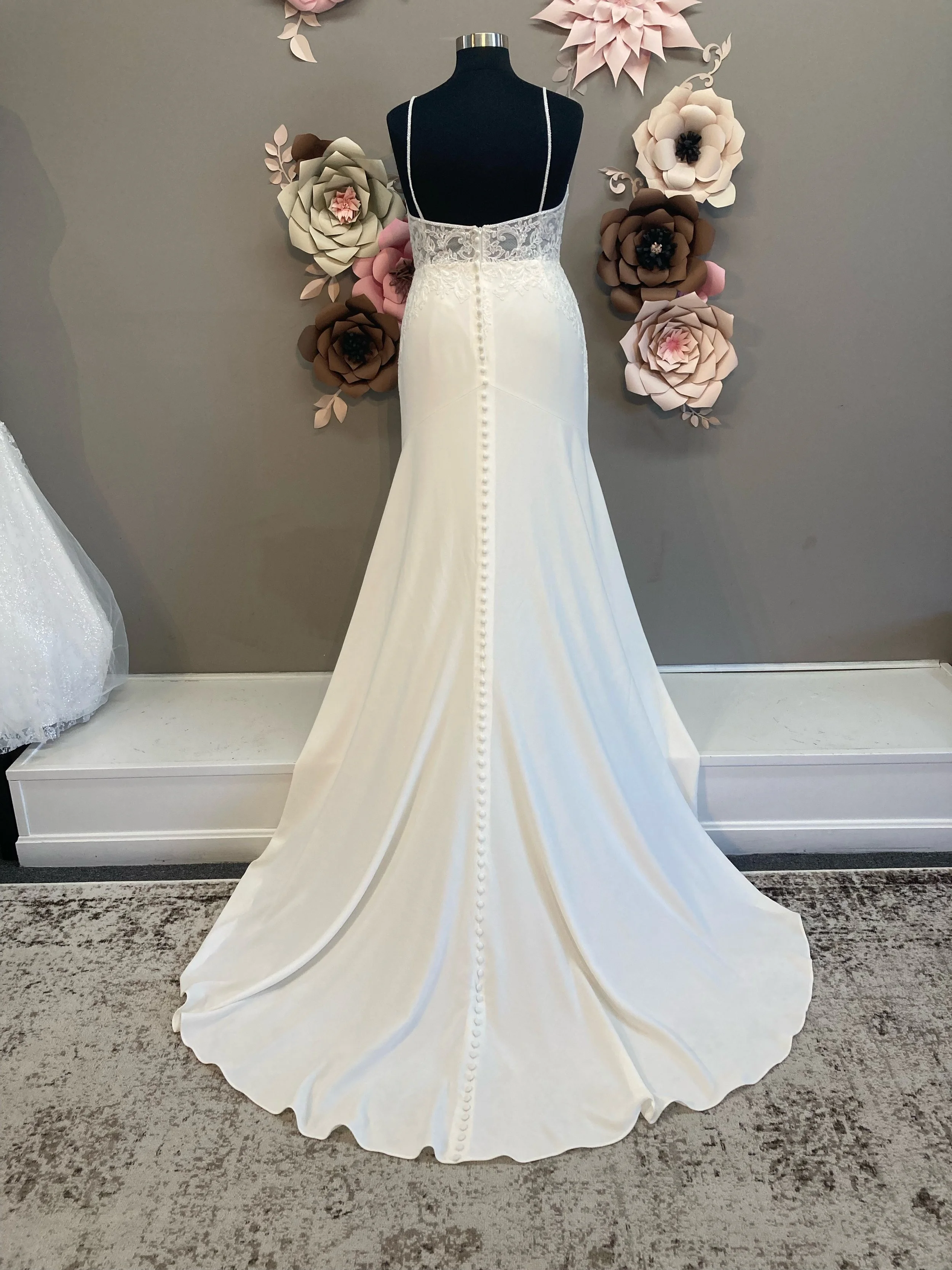Perfect for a bride with a limited budget or fast-approaching wedding. Our sale pieces consist of store samples, discontinued styles and abandoned orders. These pieces are not re-orderable. Cash & Carry. Appointments are required to try-on sale items.